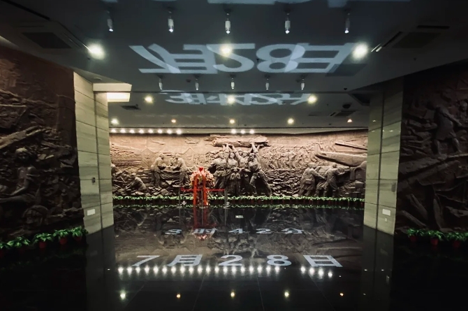展示内容: 历史上重大地震灾害和我国救援成就,如唐山大地震、汶川地震等,突出政府和社会在灾后救援、重建中的努力与成效。